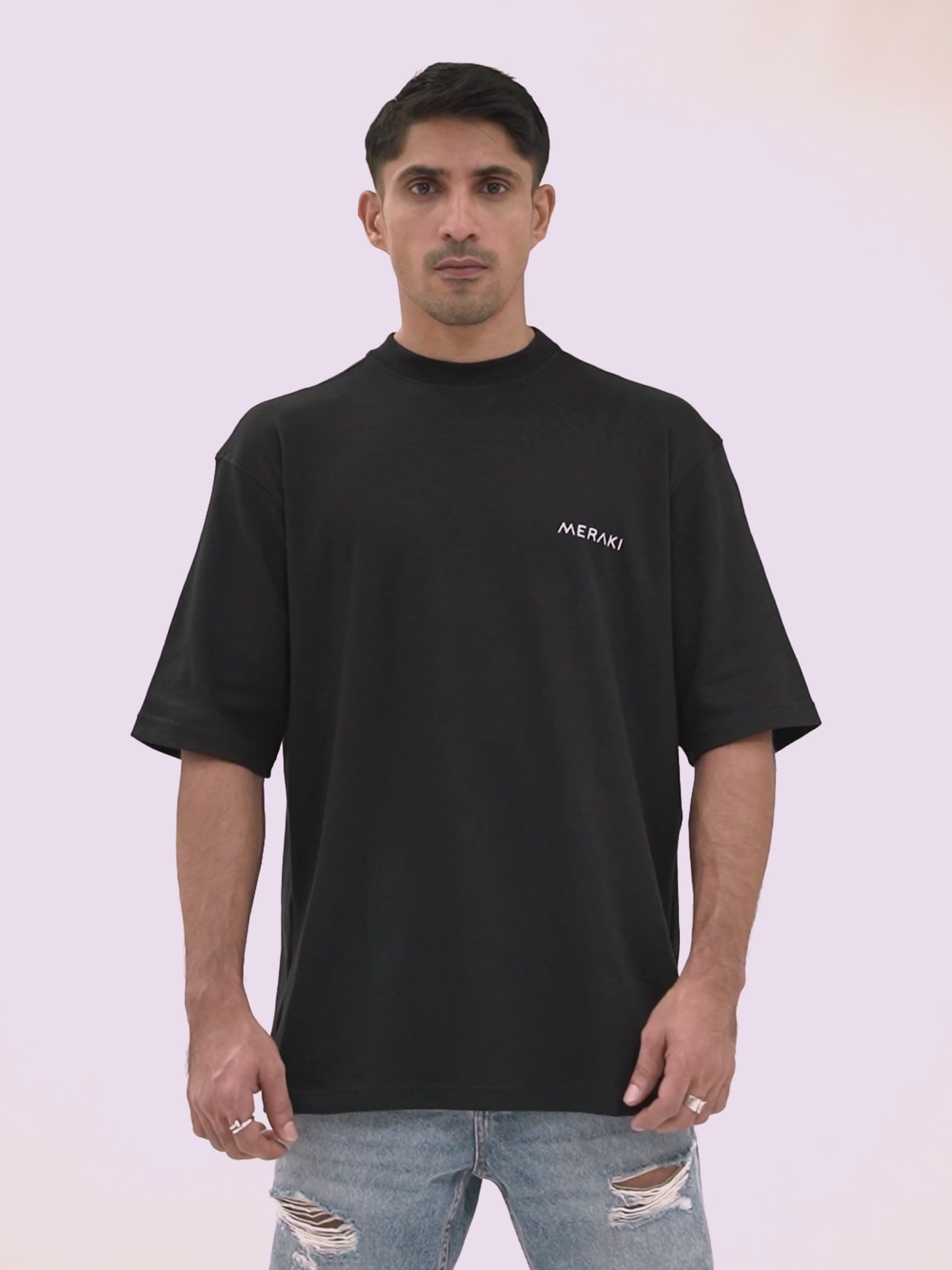 Serpent & Blooms Unisex Oversize Tee - Charcoal